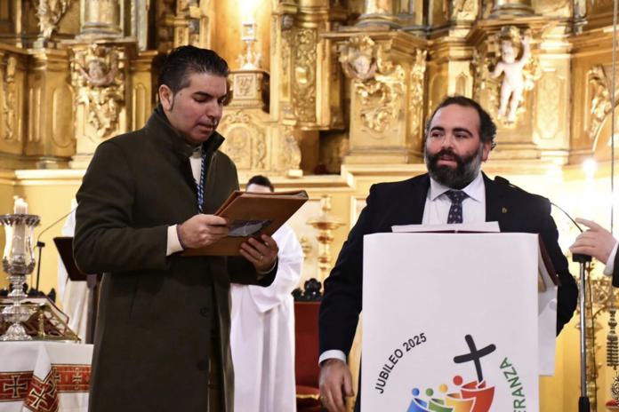 En el día de ayer, Domingo, 28 de diciembre, Solemnidad de la Sagrada Familia, durante la celebración de la Eucaristía, en la Parroquia de Nuestra Señora de la Paz; se realizó, por parte de D. Manuel Flores Cerezo, pregonero 2025; la entrega oficial de las pastas al pregonero 2026.
