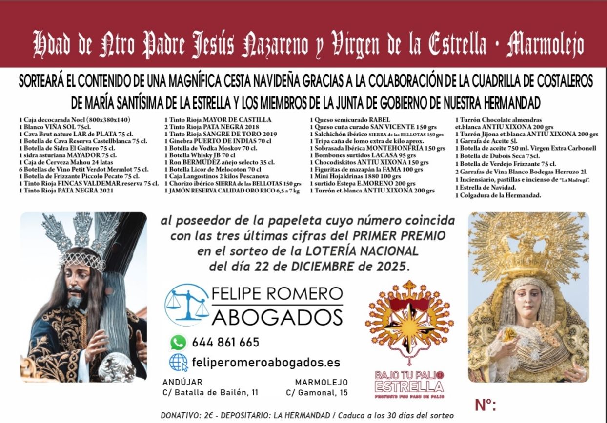 La Hermandad aprovecho este mismo medio para felicitarle y darle la enhorabuena; a la vez que le pedimos a Nuestro Padre Jesús Nazareno y a la Virgen de la Estrella, que le guiara para transmitir a todos, la Pasión, Muerte y Resurrección de Nuestro Señor Jesucristo.
