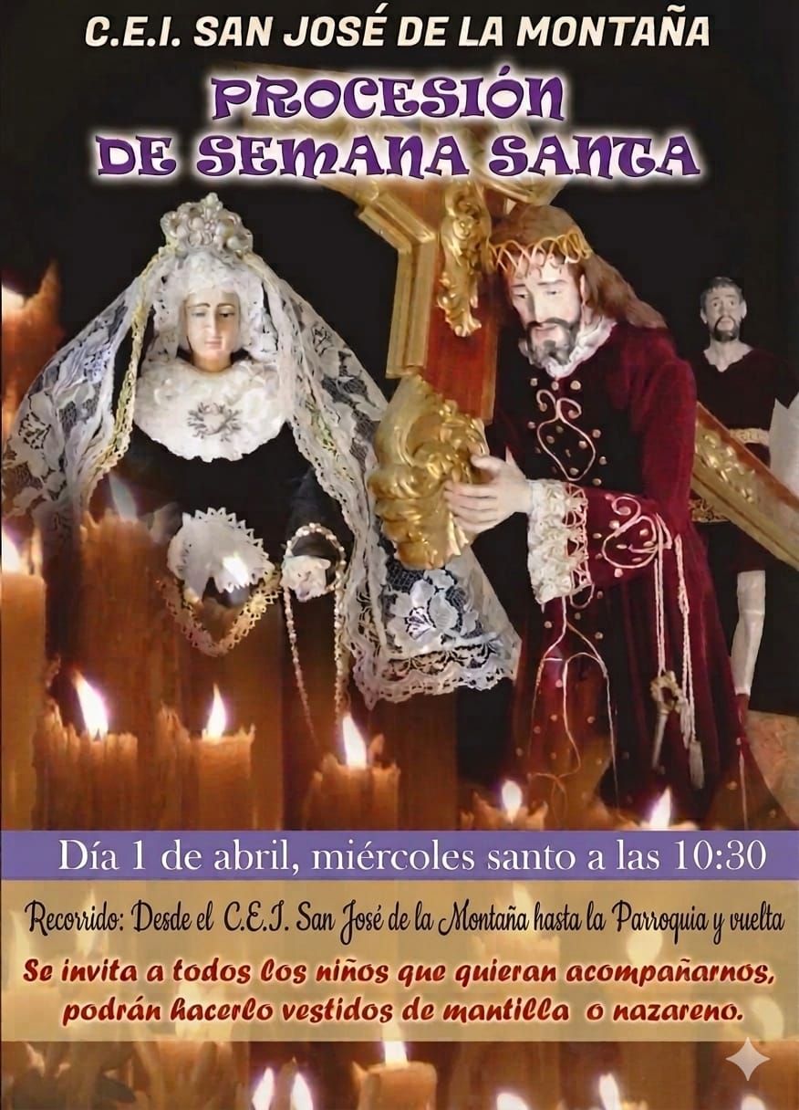 El próximo día 1 de abril, Miércoles Santo, los más pequeños volverán a tomar las calles realizando una procesión desde el Convento de San José de la Montaña hasta la Parroquia.