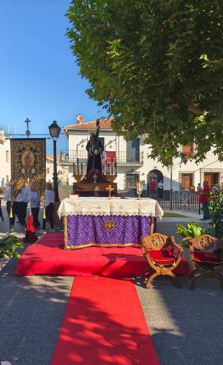 A las 9 horas salía Jesús desde la Parroquia haciendo parte del recorrido seleccionado para llegar hasta dicha plaza y celebrar la Santa Misa, de este domingo del tiempo ordinario, dirigida por nuestro Párroco y capellán, D. Cándido García Valdivia, plaza que se llenaba de hermanos, fieles y devotos que se reunían entorno a nuestra querida imagen del Nazareno.
