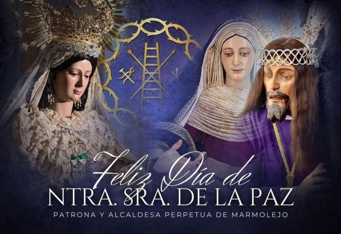Hoy, 24 de enero, Solemnidad de Nuestra Señora de la Paz, Patrona y Alcaldesa Perpetua de la Villa de Marmolejo, la Cofradía de los Santos Patronos ha celebrado la Santa Eucaristía en su honor y la posterior Procesión por las calles de la localidad. A ambos Cultos ha acudido una representación de la Hermandad.
